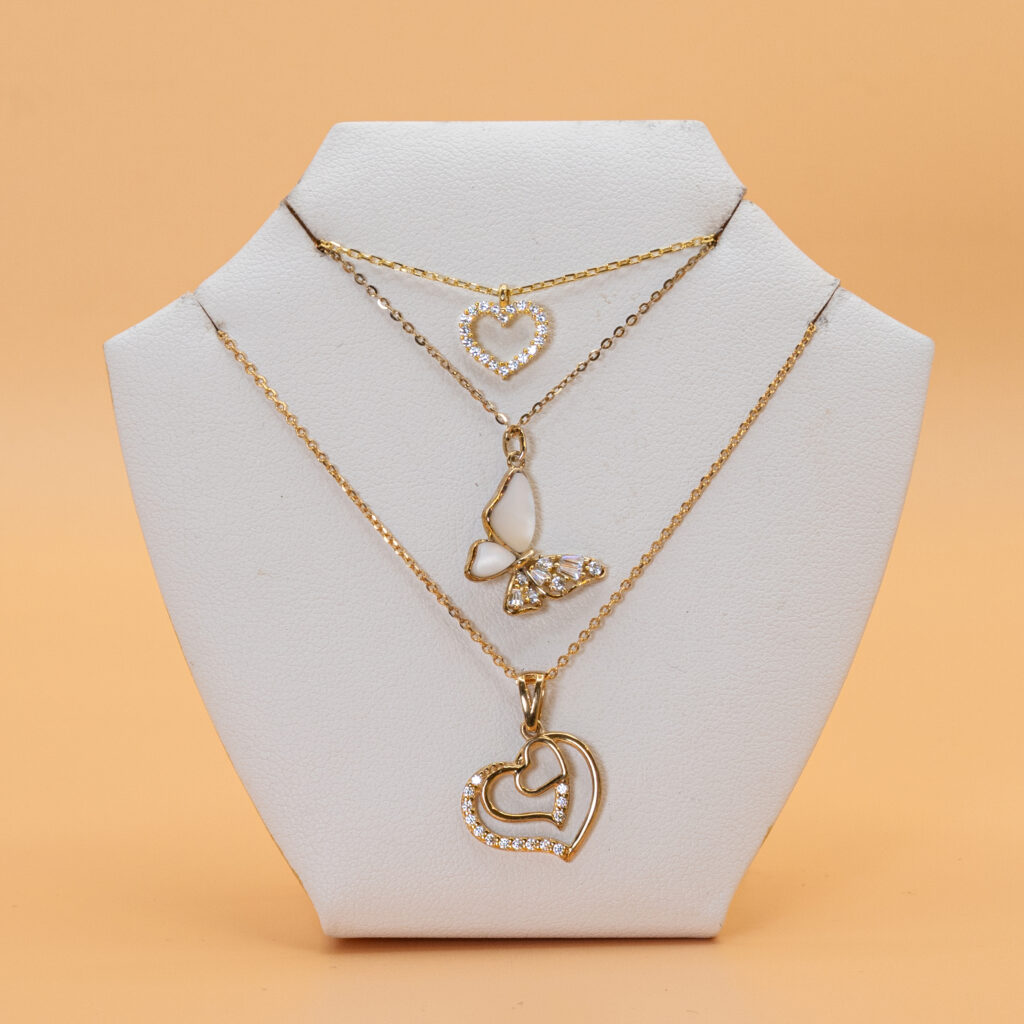 Schmuck aus Silber, Silber vergoldet, Edelstahl und auch eine kleine Kollektion aus 333 Gold erweitern das Angebot.